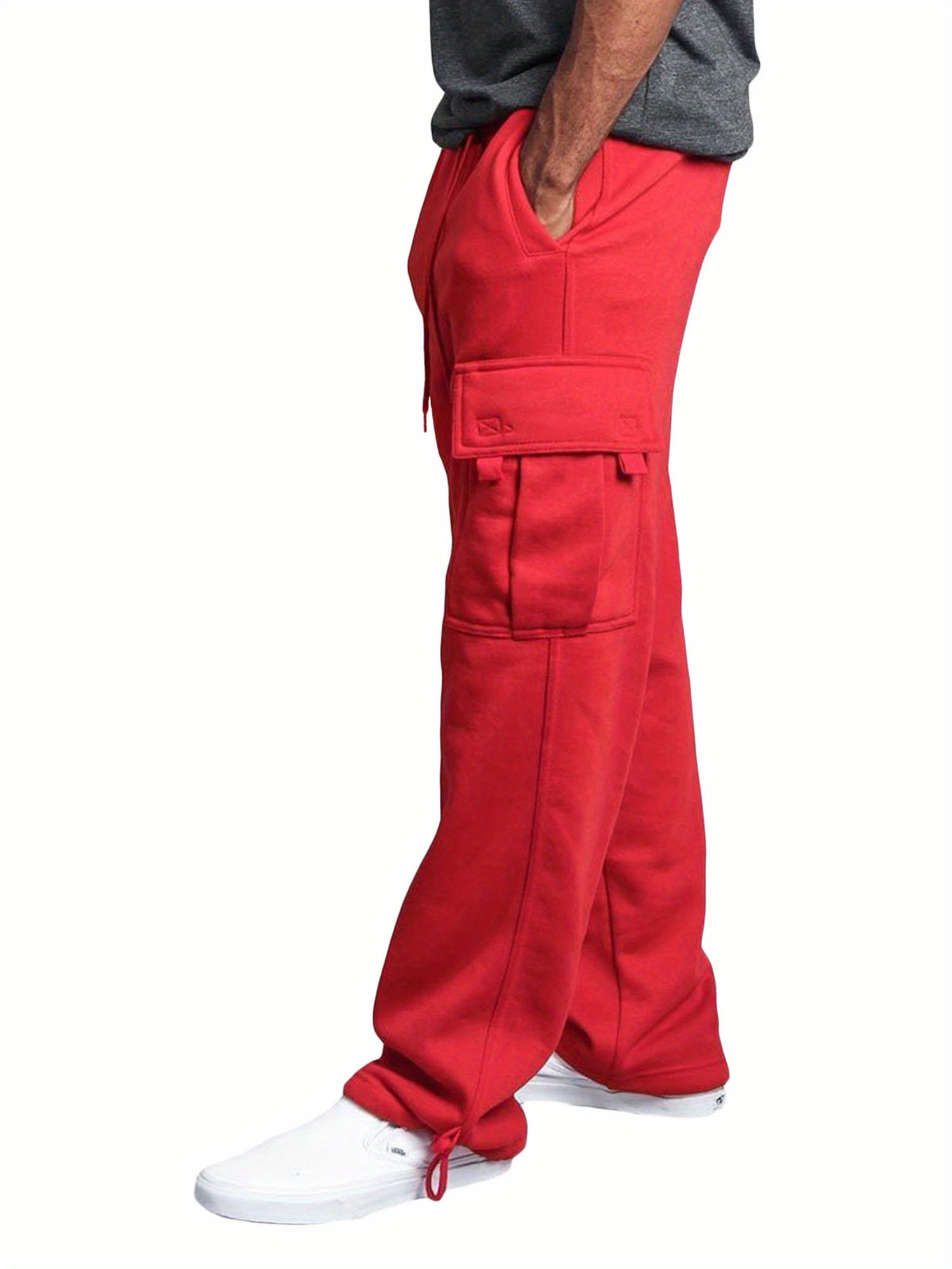 1pc Men'S Casual Cotton Cargo Pants - Solid Color, Mid Waist, Slight Stretch, Regular Fit, Woven Fabric, No Belt, Fall Season, Adult - Drawstring Elastic Waist, Loose Fit Yoga Beach Trouser