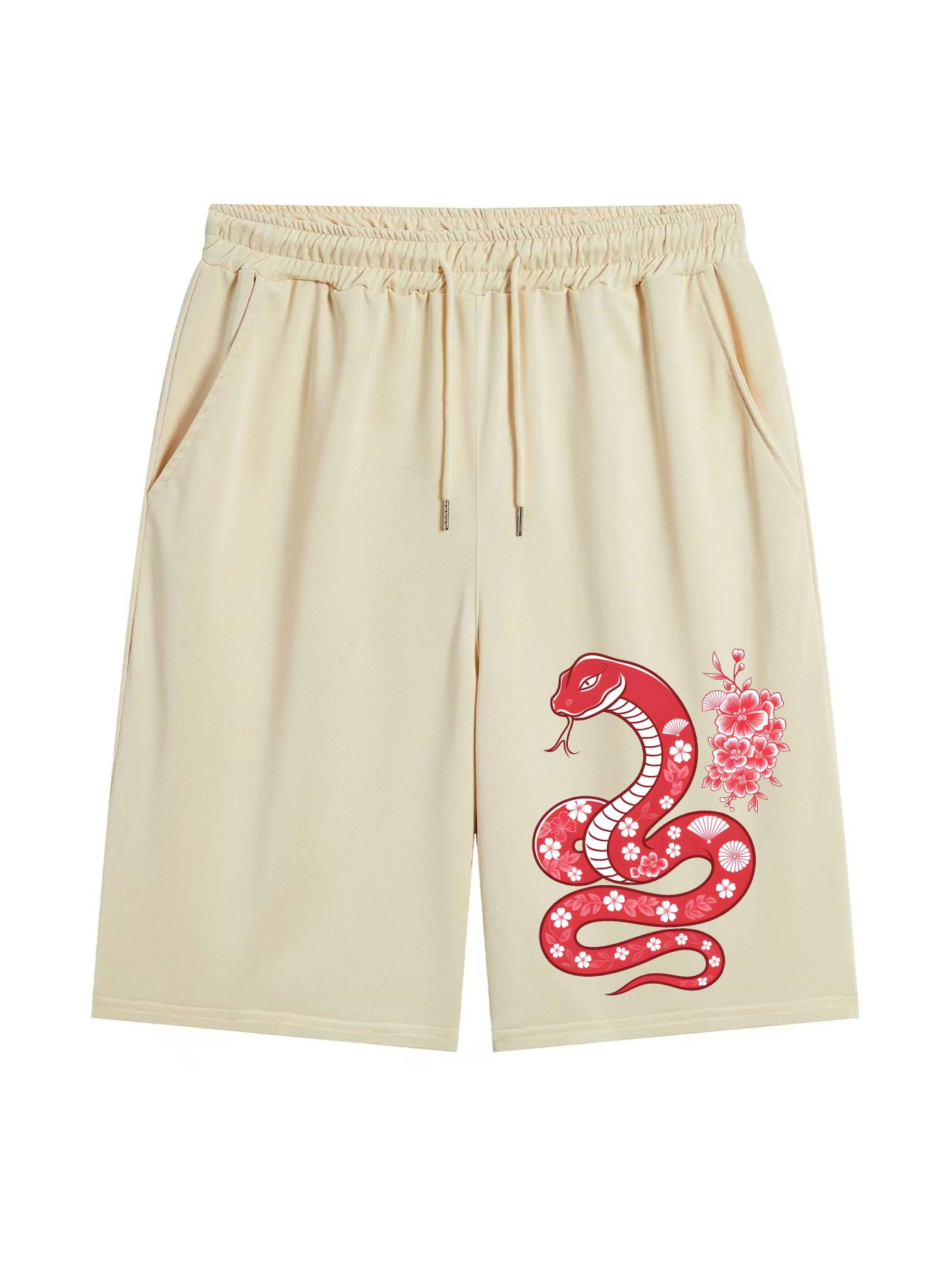 1pc Men'S Casual Polyester Shorts with Elastic Snake Print, Knitted Summer Beachwear, Regular Fit Trendy Outerwear