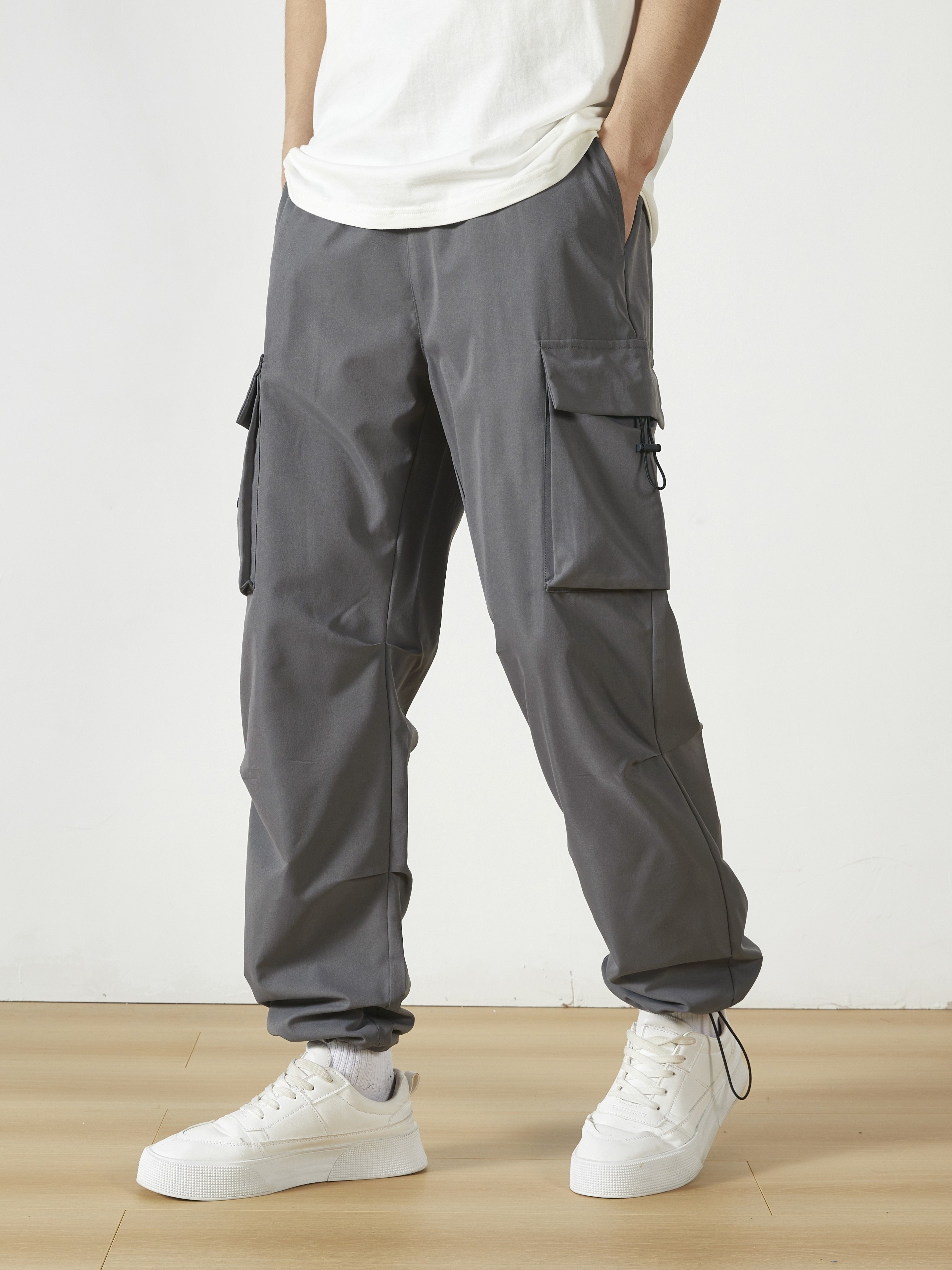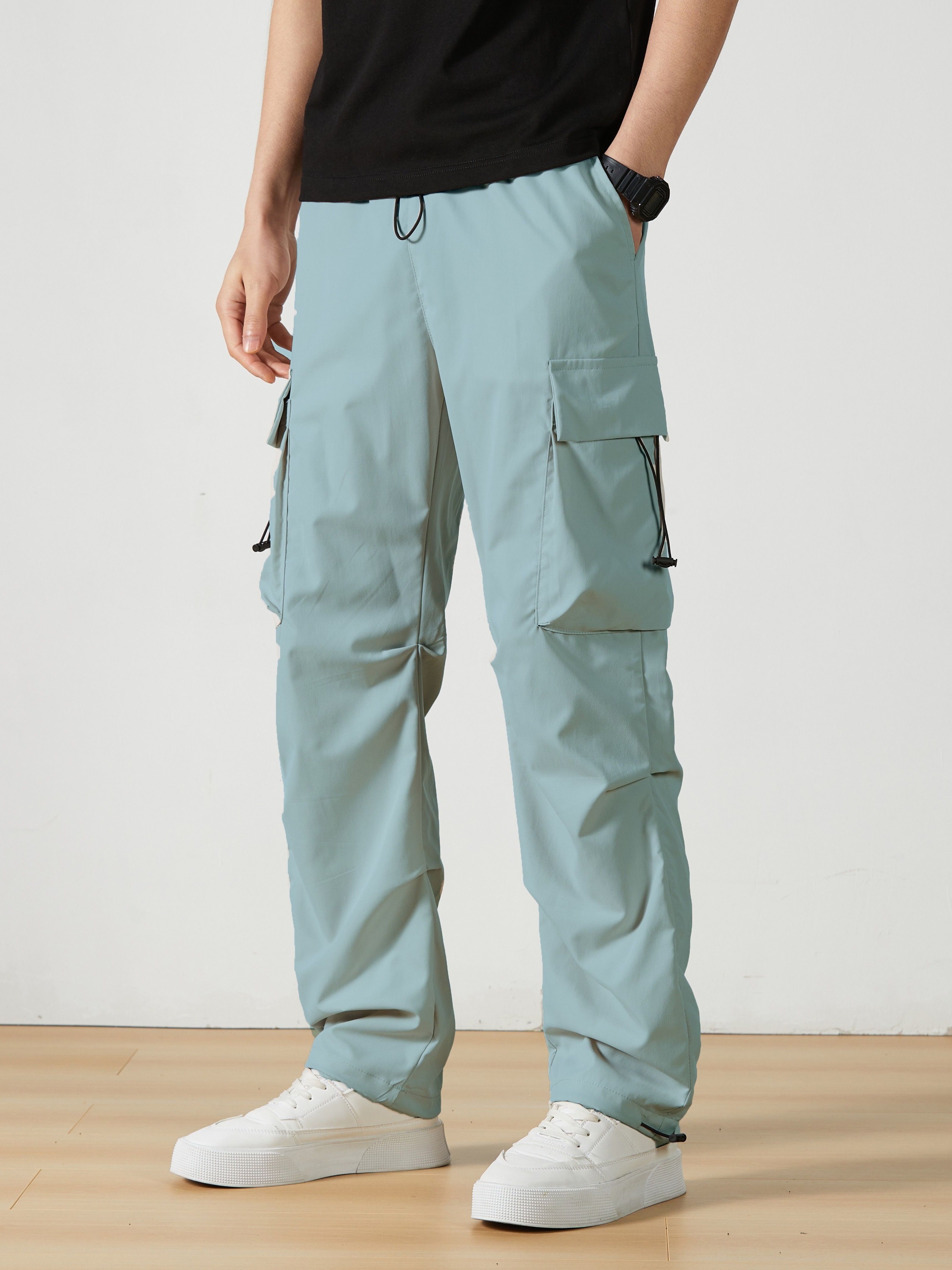 Men's Casual Flap Pocket Straight Leg Cargo Pants, Street Style Casual Pants For Outdoor Activities