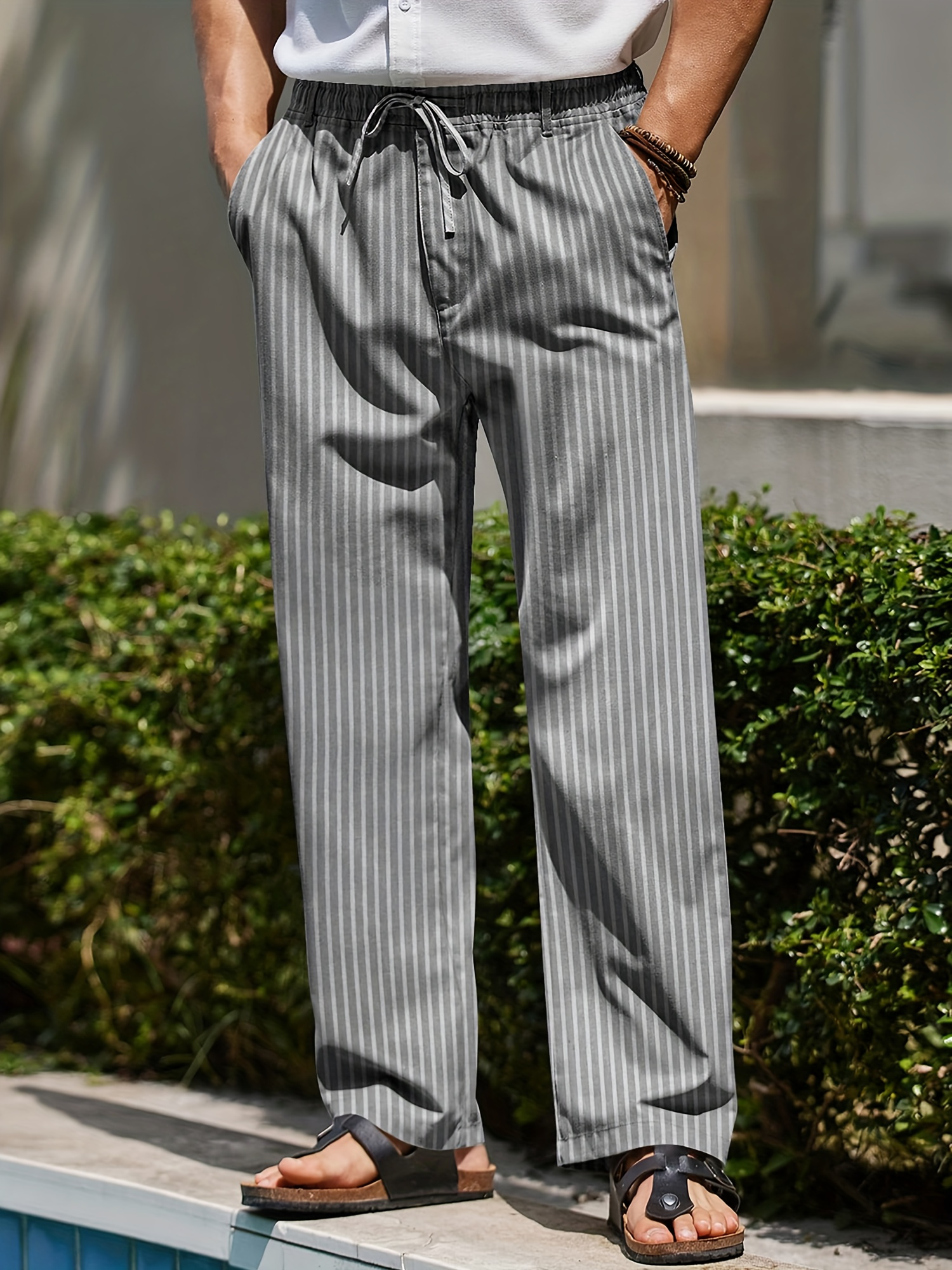 Men's Lightweight Striped Casual Pants with Elastic Waist and Pockets - Perfect for Casual Attire