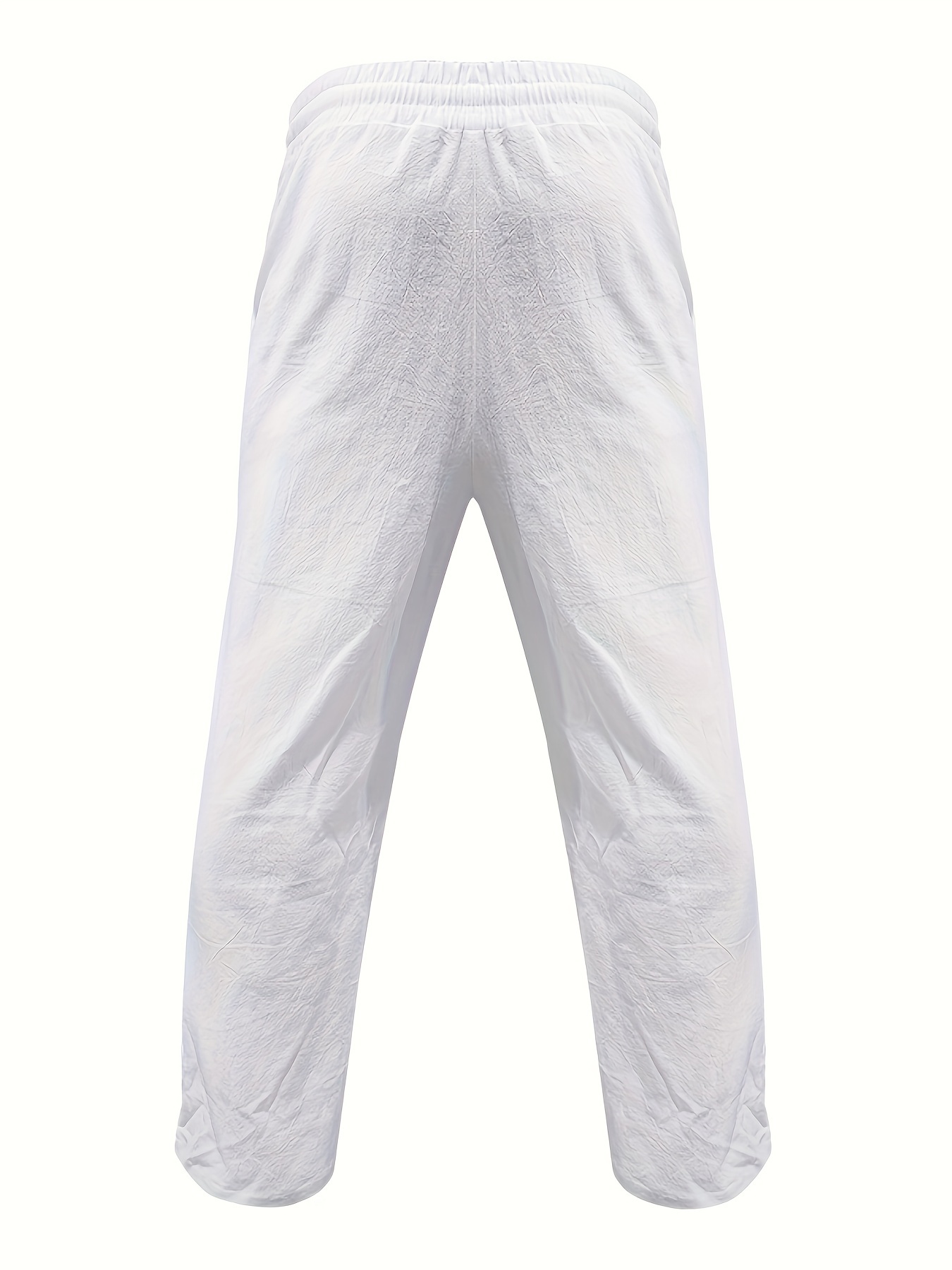 [Trusted] Men's Casual Cotton Linen Pants with Multi-Button Detail - Loose Fit, Solid Color, Perfect for Beach & Summer