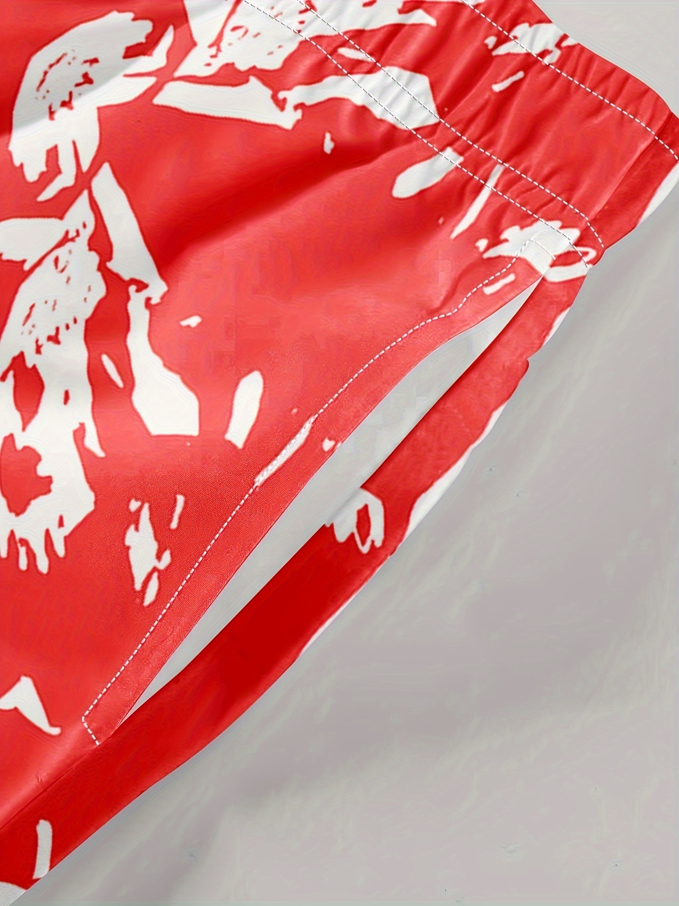 Men's Casual Chic Printed Active Shorts, Drawstring Beach Shorts For Summer Beach Resort