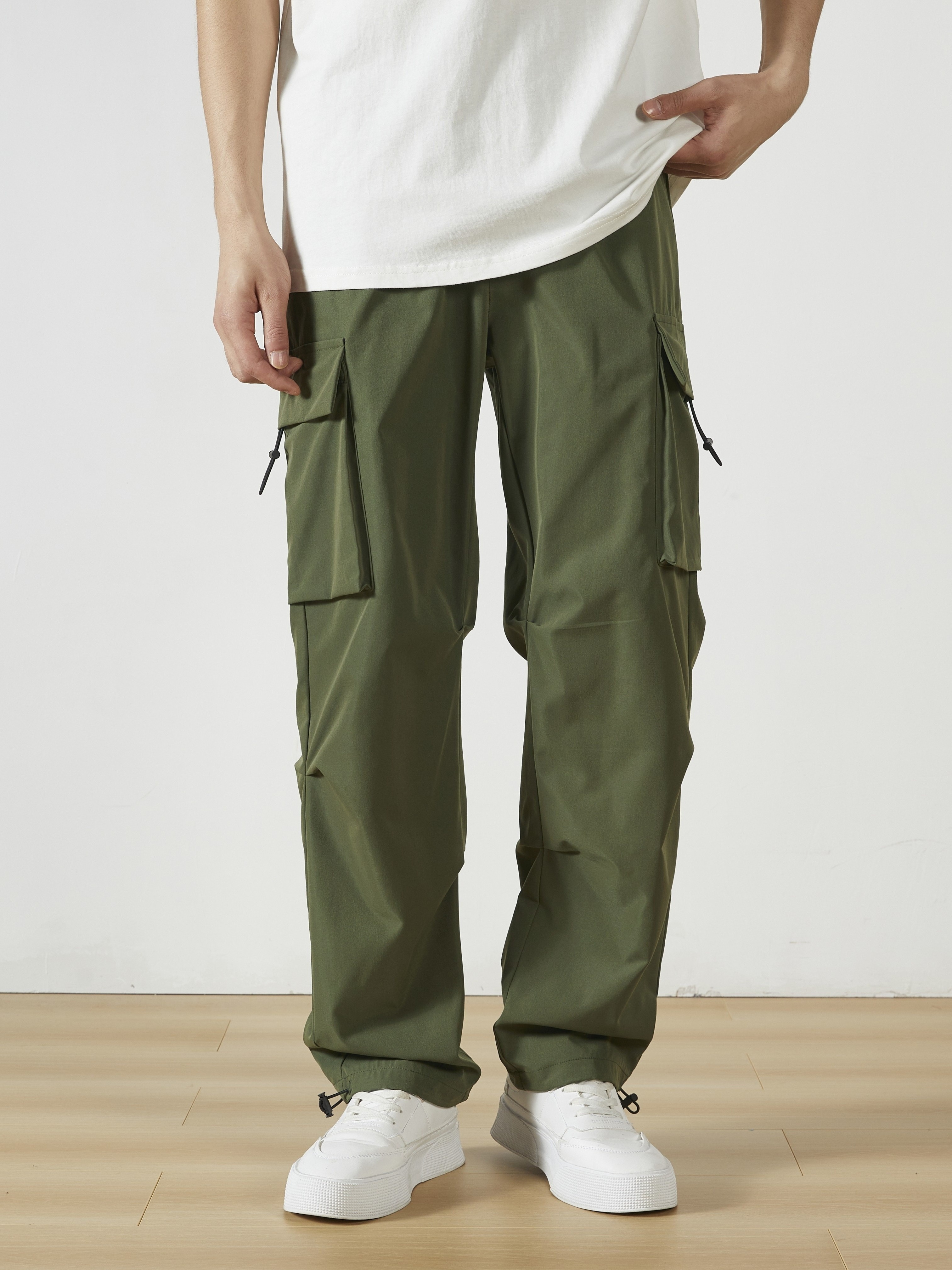 Men's Casual Flap Pocket Straight Leg Cargo Pants, Street Style Casual Pants For Outdoor Activities