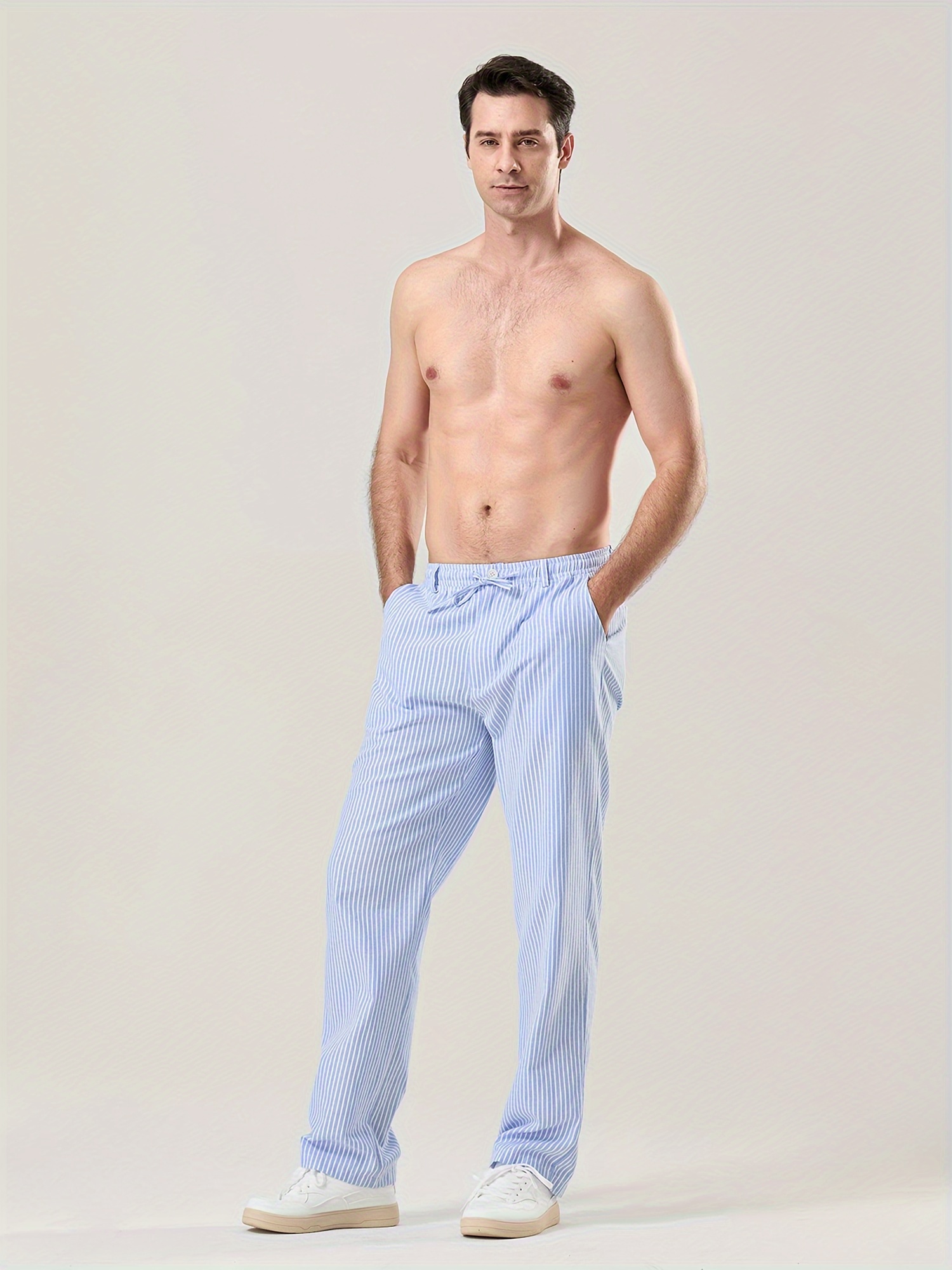 Men's Lightweight Striped Casual Pants with Elastic Waist and Pockets - Perfect for Casual Attire