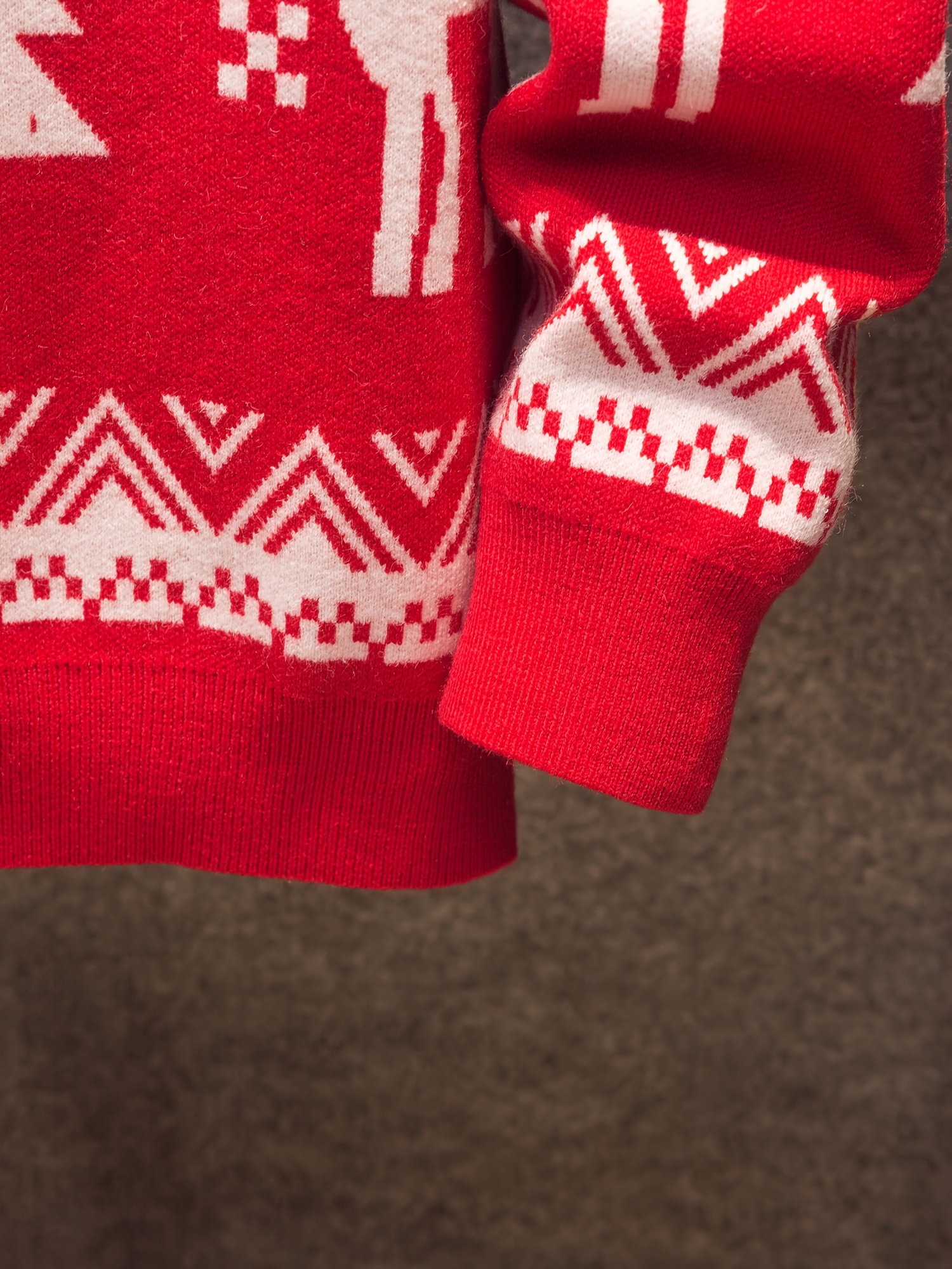 1pc Festive Acrylic Christmas Sweater for Men and Women - Crew Neck, Long Sleeve, Regular Fit, Knit Fabric with Deer and Tree Patterns, Medium Stretch, Party Pullovers for Fall/Winter
