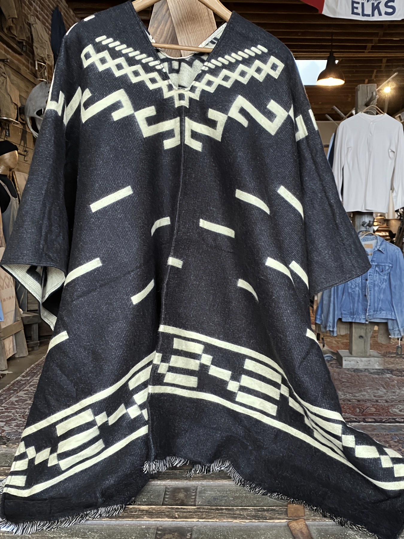 Casual V-Neck Tribal Pattern Poncho with Tassels - Polyester & Acrylic Blend, Non-Stretch Woven Fabric, Fall/Winter Warmth - Western Bandit Inspired Cape for Outdoor Adventures and Shopping
