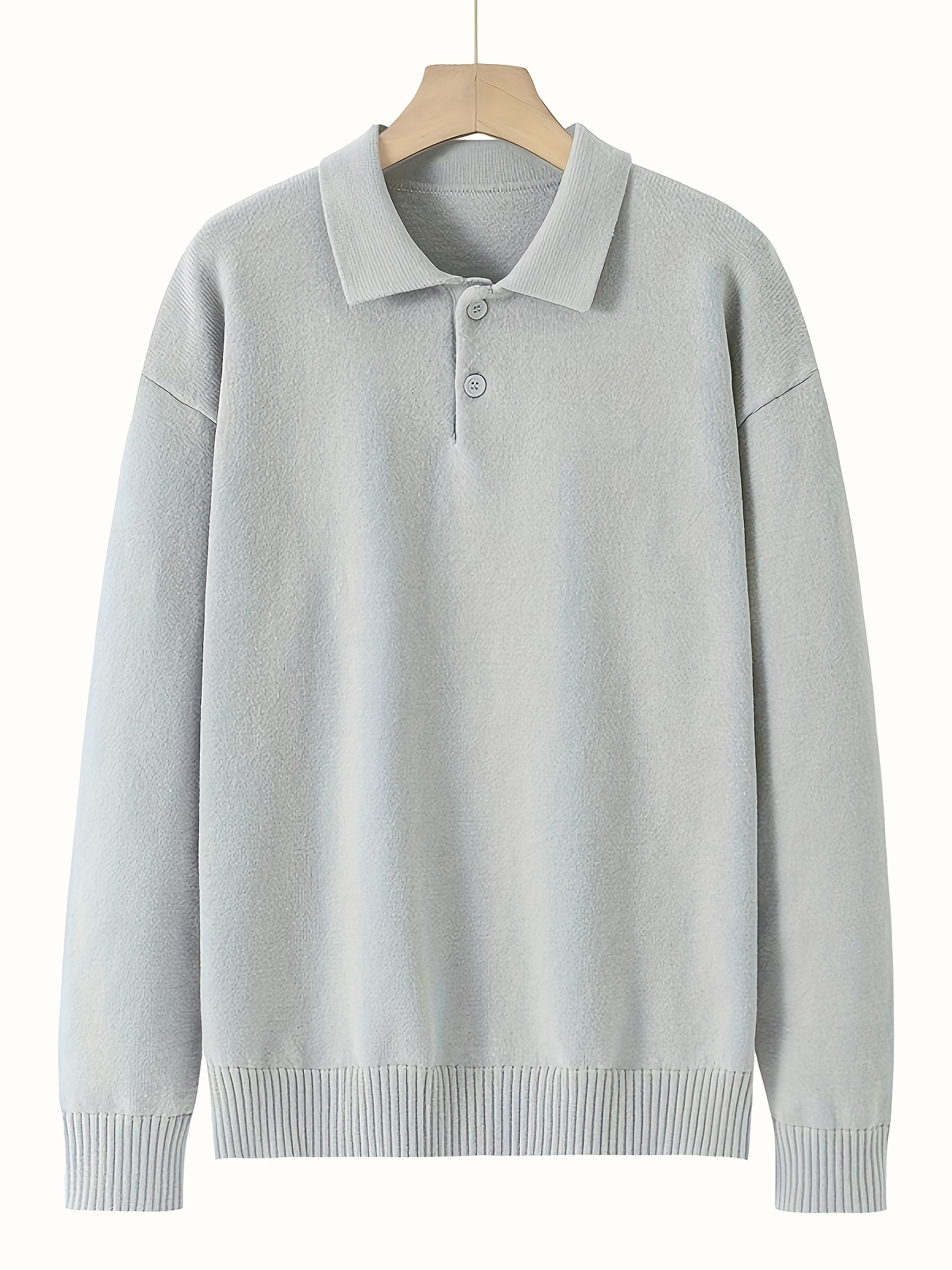 Men'S Casual Solid Color Button-Design Sweater | 100% Polyester Knit Fabric | Medium Stretch | Polo Collar | Loose Fit | Fall/Winter Collection